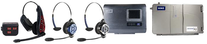 HME Wireless IQ 6000 Headset, 6000 Belt Pack, ION 6100 Headset, and Chrome 6300 Headset