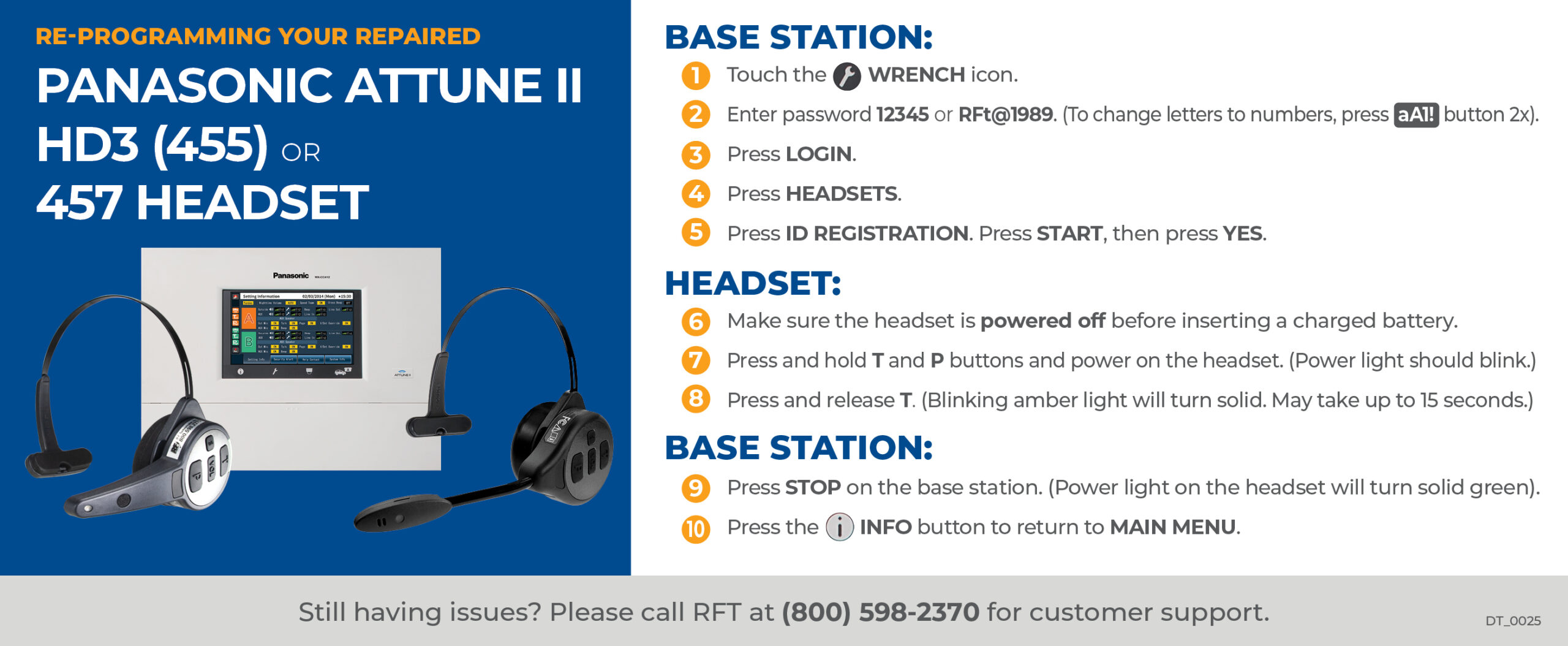 The following instructions are for use with an HME ION 6100 headset and the HME ION 6100 base station.